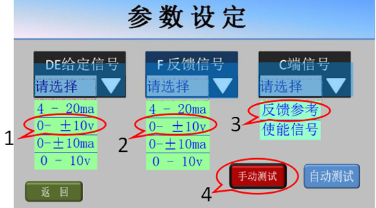 7、手動(dòng)測(cè)試基本正常后,點(diǎn)擊屏幕左下方的返回鍵,返回參數(shù)設(shè)定畫面;